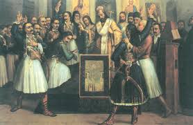 1821 - Στην Αγία Λαύρα, ο Παλαιών Πατρών Γερμανός, ο Λόντος και ο Ζαΐμης υψώνουν το λάβαρο της επανάστασης.